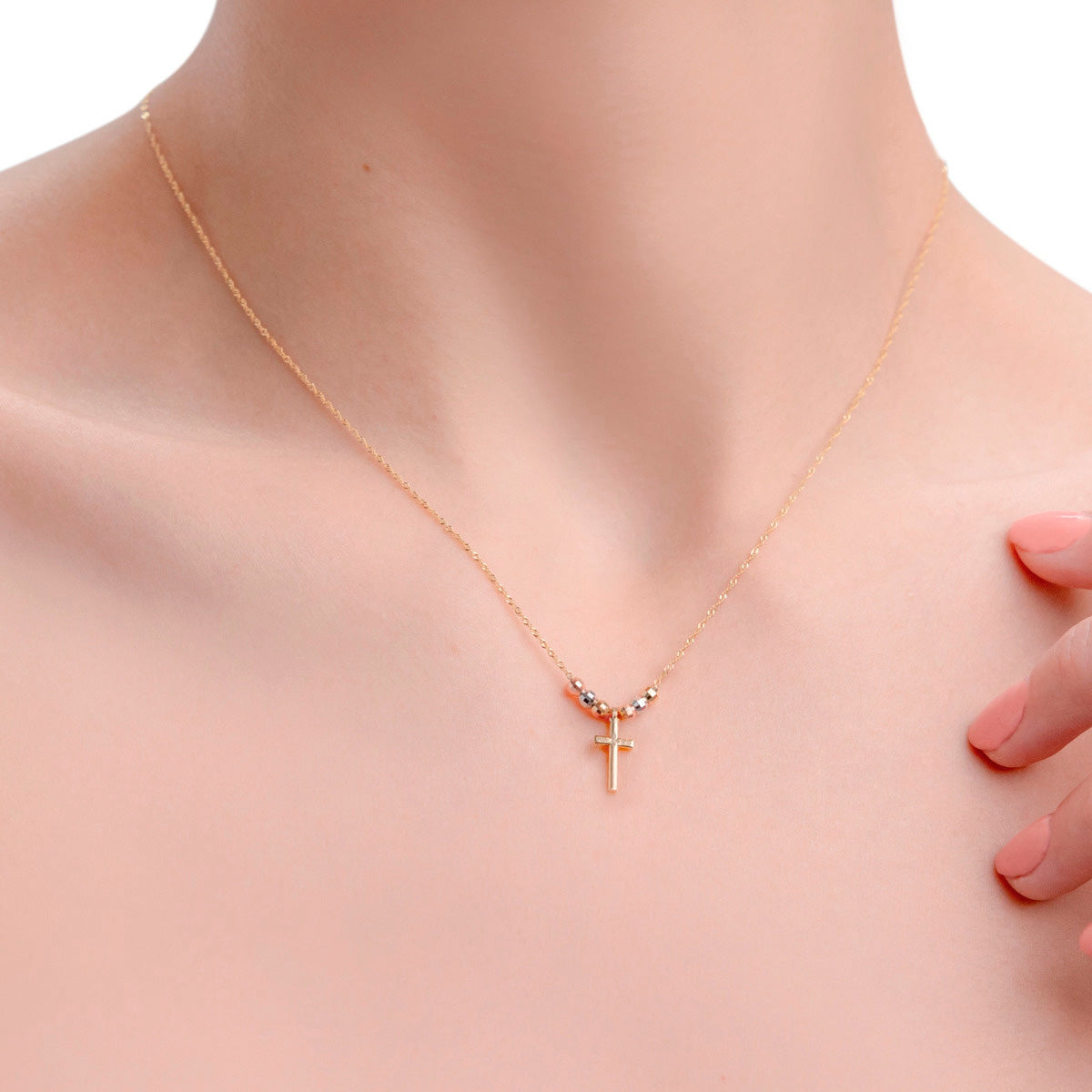 Gargantilla Italiana 14k De Cruz Y Bolas Tricolor
