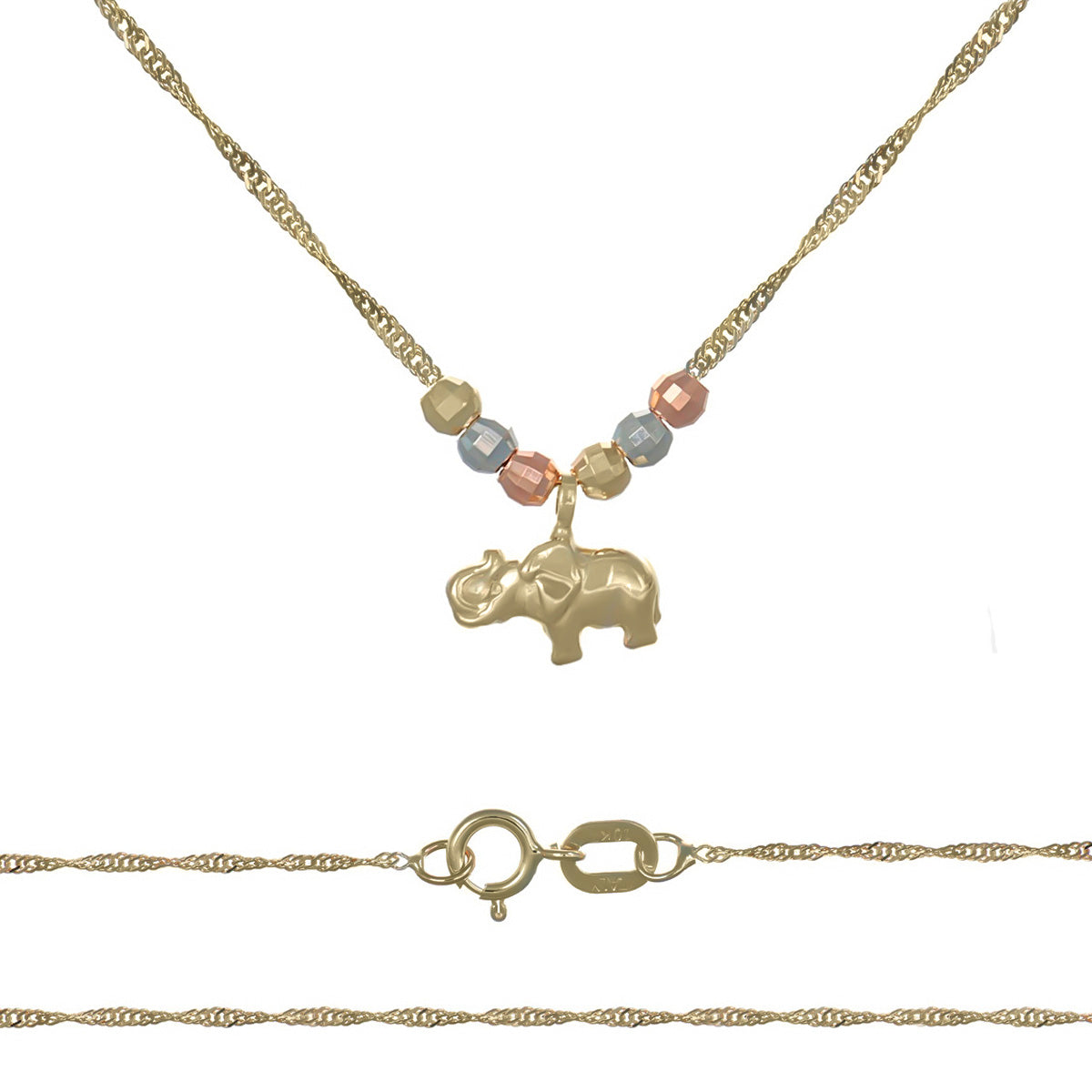 Gargantilla Italiana 14k De Elefante Y Bolas Tricolor
