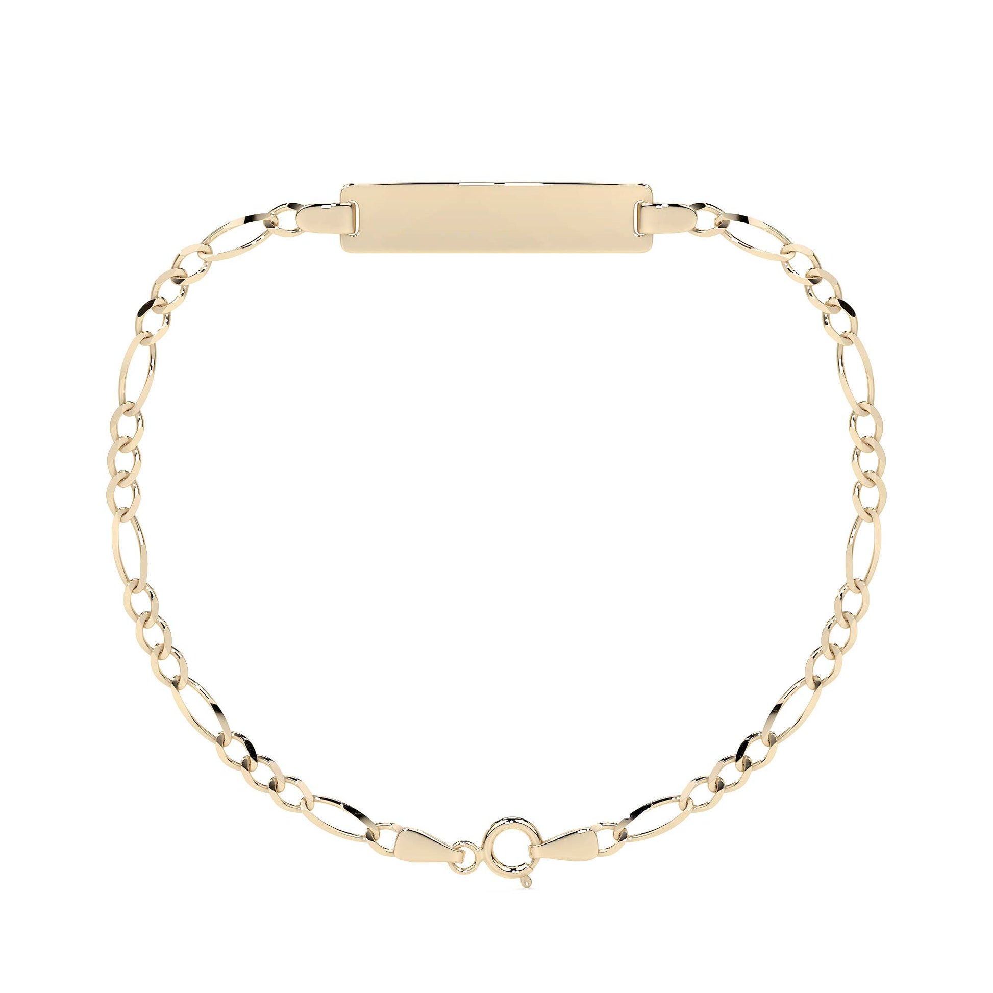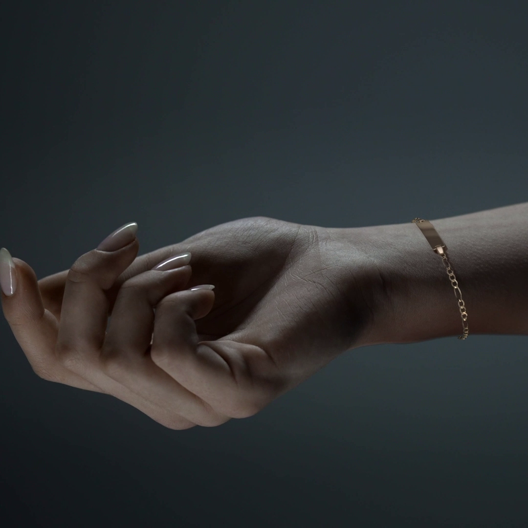 El diseño Fígaro 3x1 con placa combina eslabones tradicionales con una placa central que aporta carácter y distinción. Con un calibre de 2.7 mm, la pulsera es resistente y adecuada para el uso diario, sin perder una apariencia elegante y refinada.